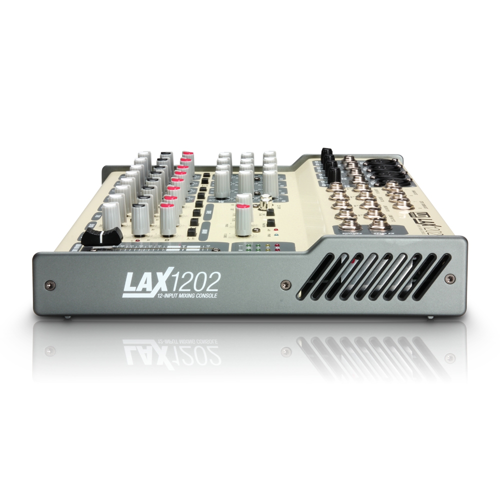 Similar in its compact size to the LAX1002, but with four microphone and four stereo line inputs, the LAX1202 boasts 12 inputs and impresses with ease of operation despite its small dimensions. An integrated DSP effects engine with 100 presets makes this compact console the perfect control station, both on stage and in the studio.