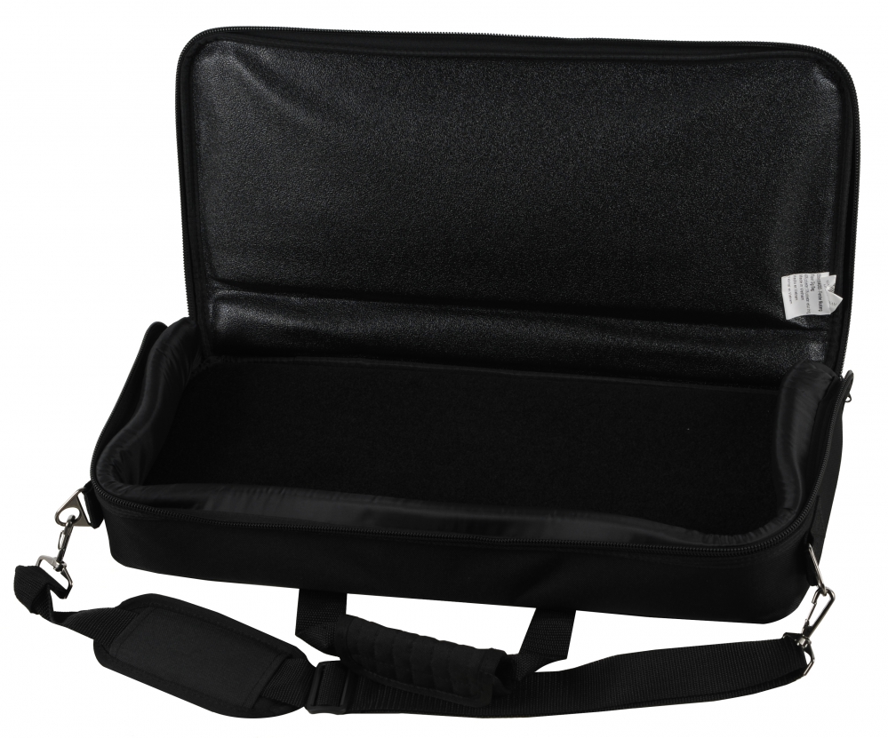 The Fender Pedal Board Bag features a 600-denier outer cover with 1/2 inch padding around the bag with a front accessory pocket to hold cables and power supply. Cover transforms into a non slip bottom for stage use and inside bottom of bag has Velcro style covering. Ships with a roll of the self adhesive hook side of that material. Comfortable padded shoulder strap included. Fits Fender Mustang Floor.