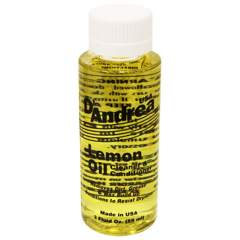 Proudly made in the USA, D'Andrea Lemon Oil & Conditioner can be used on your entire instrument. This is the first step in restoring and maintaining the finish and playability of your instrument. Apply sparingly to remove layers of dirt, grease, and wax build-up all while conditioning the wood to resist dryness. Keep your instruments in tip-top shape with D'Andrea's professional line of Guitar Care Products. Proudly Made in USA. Capacity: 59 ml.