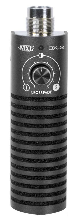 The MXL DX-2 is the world's first variable dual dynamic capsule microphone that allows you to fully customize your sound by mixing one capsule to the other and all points in between. Capsule one's super cardioid large capsule design is tuned to capture the warmth and fullness of your instrument, while Capsule 2's smaller cardioid capsule offers superb mid-range and high end detail. The front of the mic is a flat-faced, side address design which places the capsules close to the source for optimal pickup, while the back side has the cross-fade knob, making adjustments a breeze. The patent pending DX-2 is the only mic that allows you to dial in your signature sound.