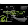 Gravity® has tackled all these problems with the SP 3102 TM. The studio monitor stand features a table clamp to securely and safely attach the structure to tables with tabletops no thicker than 100 mm. Just like other Gravity® products, it can be tightened using a sturdy and handy knob. In contrast to conventional table stands which require a large base plate to not budge, SP 3102 TM's clamp base is only 10 × 7 cm and does not take up more space than a standard screen holder. The design of the studio monitors stands ensures that they do not stick too far out off the table. This ensures a greater distance between the listener and monitors even when tables aren't that deep, as well as the perfect speaker placement to find the sweet spot in the room.